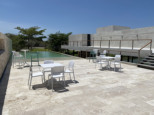 - Terraza exterior para piscina con barra, tarja y meseta de servicio (área no techada)
